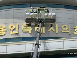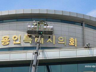 이번에 소개드리는 사례는 용인특례시에서 진행한 용인특례시청 철재 글자간판 고층 벽면 교체 설치 사례입니다!